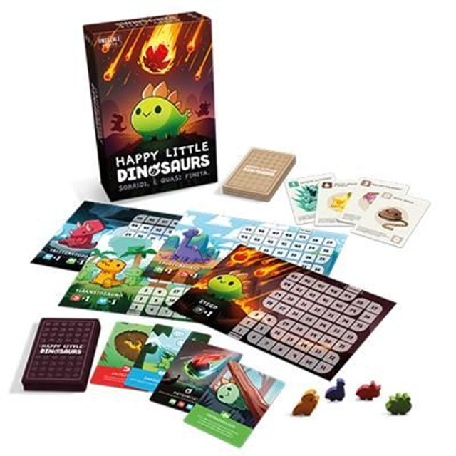 Contenuto: 97 carte, 4 pedine Dinosauro, 4 plance giocatore Dinosauro, 1 regolamento.