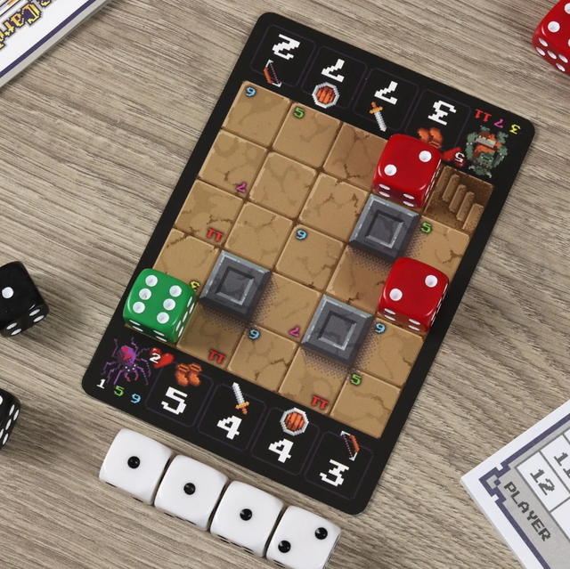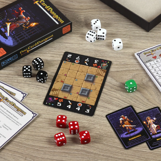 Il dungeon crawl con piazzamento dadi giocato su… una singola carta! Sarete degli intrepidi avventurieri intenti a combattere contro dei temibili mostri che aumentano di numero e difficoltà ad ogni livello. Sia l’avventuriero che i mostri sono rappresentati sulla mappa da dadi con il valore rivolto verso l’alto che mostra la loro salute attuale. In ogni stanza potrete trovare da 1 a 4 mostri. I livelli da superare sono ben 12! La meccanica di base è lanciare tre dadi e assegnare un dado a ciascuna delle tue abilità: attacco, velocità e difesa. Sommando i tuoi livelli di abilità in ciascuna di queste aree con i dadi che hai assegnato, ottieni un numero totale di punti da spendere.Superata una stanza, puoi potenziare una delle tue quattro abilità: Velocità, Attacco, Difesa e Gittata. 10+ / 15-60min / 1 giocatore